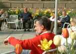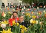 No meio das flores numa zona pedonal de Munique