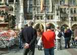 Esperando o início do Glockenspiel na Marienplatz de Munique
